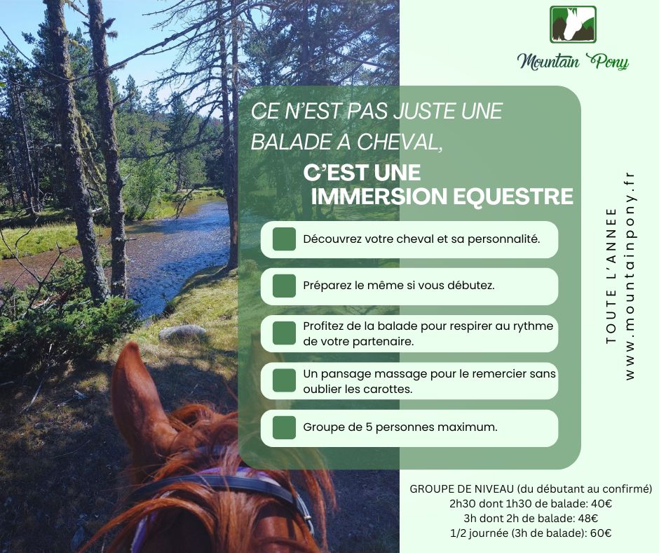 - débutant: une balade pour profiter au rythme du pas de sa monture. Idéal pour commencer et prendre le temps